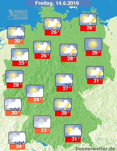 Der Tag startet zunächst mal ruhig mit einer freundlichen Mischung aus Sonne und lockeren Wolkenfeldern und es bleibt für viele für lange Zeit trocken. Gegen Abend bilden sich dann wieder vermehrt örtliche Schauer- und Gewitterherde. Davon ausgeschlossen bleiben voraussichtlich die Gebiete südlich der Donau, sowie die Gebiete in Odernhähe.
