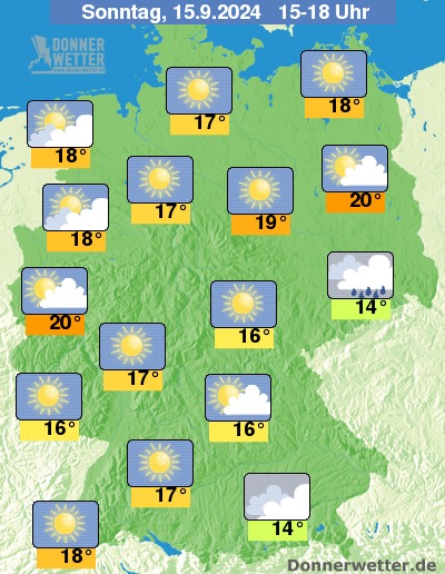 Die Temperaturen gehen in den frühen Morgenstunden zurück auf Werte um 14 bis 7 Grad.