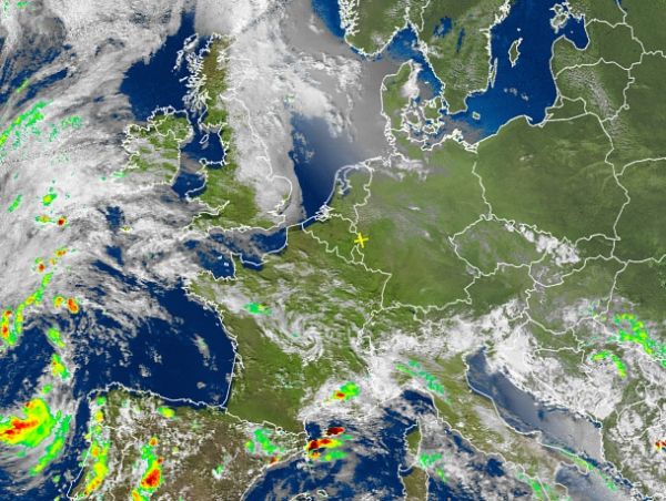 Deutschland ist fast wolkenlos, wie unser Satellitenbild vom späten Nachmittag es zeigt. Mehr Satellitenbilder finden Sie hier.