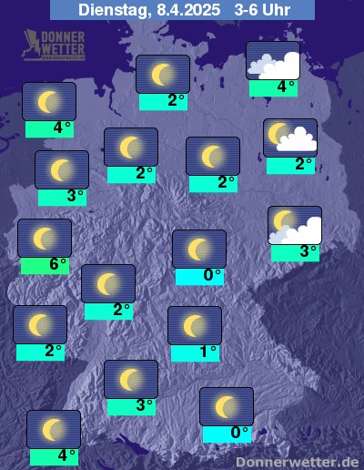 Die Temperaturen sinken in den frühen Morgenstunden auf Werte um 6 bis 0 Grad.