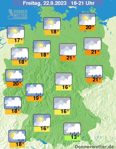 Heute Abend ist es zum Großteil stark bis dicht bewölkt. Über der Westhälfte sind jedoch auch vielerorts Aufheiterungen möglich, dazwischen können sich aber auch einzelne Schauer bilden. Die Temperatur liegt bei 13 Grad in München und 21 Grad in Berlin.