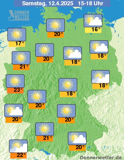 Am Samstagnachmittag zeigt sich der Himmel über dem Osten und Nordosten heiter bis wolkig; in den übrigen Landesteilen scheint die Sonne am Nachmittag von einem meist wolkenlosen Himmel. Es bleibt trocken.