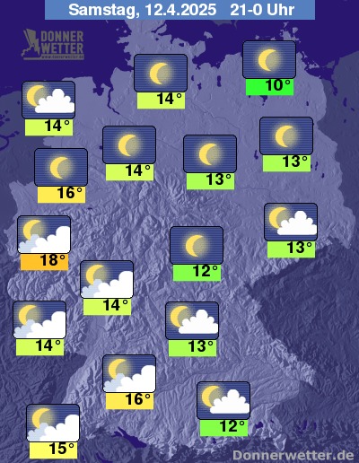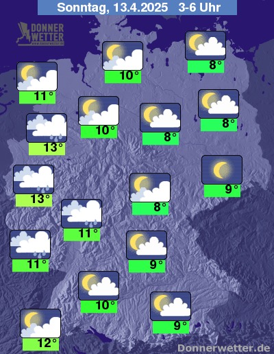 Die Temperaturen gehen in den frühen Morgenstunden zurück auf Werte um 13 bis 8 Grad.