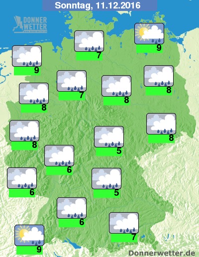 Heute ziehen verbreitet dichte Wolken über die Bundesrepublik, dabei fällt immer wieder Regen, zwischenzeitliche Auflockerungen sind zwar möglich, bleiben insgesamt jedoch selten. Die besten Chancen auf Sonne bestehen dabei rund ums Ostseeumfeld. Die Temperatur erreicht Werte zwischen 5 und 9 Grad.
