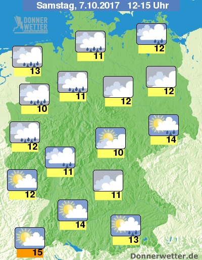 Heute Nachmittag ist es im Süden und anfangs auch im Osten noch meist aufgelockert bewölkt und dazu größtenteils trocken. Über das übrige Bundesgebiet ziehen bereits dichte Wolken hinweg und es fällt zm Teil langanhaltender Regen. Die Temperatur liegt bei 10 Grad im Thüringer Becken bis 15 Grad im Breisgau. Im Norden weht ein teils starker, an den Küsten auch ein zum Teil stürmischer Wind.