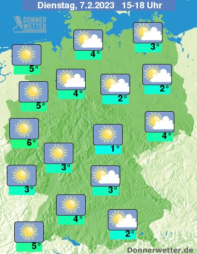 Die Temperaturen erreichen Höchstwerte um 1 Grad im Thüringer Becken und 6 Grad in der Kölner Bucht.