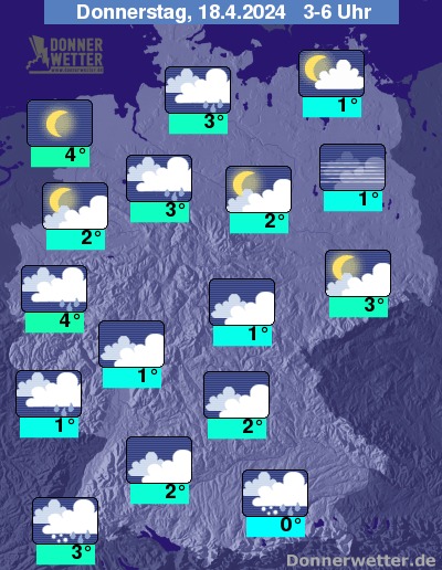 In der Nacht auf Donnerstag sind vor allem im Süden noch teils schauerartige Niederschläge möglich; oberhalb von 400 bis 600 m fällt auch Schnee. In den übrigen Landesteilen bleibt es bei größeren Auflockerungen trocken, gebietsweise kann sich Nebel bilden.
