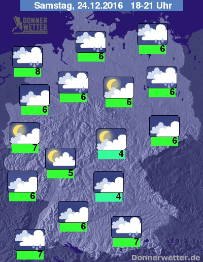 Heute Abend ist es über der breiten Landesmitte oft aufgelockert bewölkt und mehrheitlich trocken. Nördlich und südlich des breiten Streifens bleibt es hingegen bei der verbreitet dichten Bewölkung und zeitweiligem Regen. Die Temperatur liegt zwischen 4 Grad im Thüringer Becken und bis 8 Grad in Ostfriesland. An Nord- und Ostsee weht ein teils stürmischer Wind.