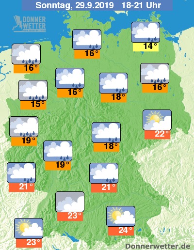 In der Nacht zum Montag bleibt es nördlich der Mainlinie weitestgehend bedeckt und es fällt verbreitet zeitweise Regen. Im Süden ist es auch teils stark, teils aber auch aufgelockert bewölkt, hier bleibt es weitgehend trocken. Die Temperatur sinkt auf 16 Grad in Dresden und bis 12 Grad in Ilmenau.