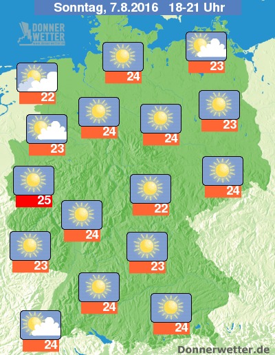 Heute Abend scheint weiterhin verbreitet die Sonne von einem überwiegend stahlblauen Himmel. Im Nordwesten und im Umfeld der deutschen Küsten ziehen jedoch auch oft einige Wolken durch, dazu ist aber nur selten etwas Regen möglich. In den anderen Landesteilen bleibt es trocken. Die Temperatur steigt auf 22 Grad in Emden und bis 25 Grad in Köln.