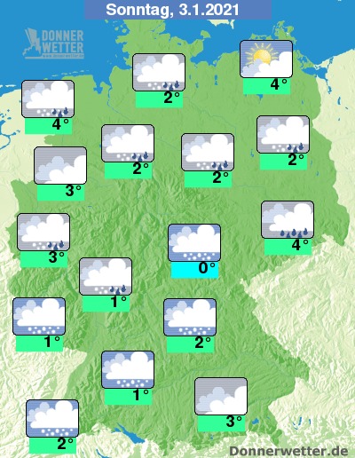 Heute ist es im Norden und Westen oft stark, teils auch aufgelockert bewölkt, dabei bleibt es bis zum frühen Abend noch trocken. Im übrigen Land bleibt es bedeckt und es fällt bereits zeitweise Schnee, über Sachsen und Brandenburg auch oft Regen oder Schneeregen. Zum Abend hin ist auch im Norden und Westen Regen oder Schnee möglich. Die Temperatur erreicht 0 Grad in Erfurt und bis 4 Grad in Rostock.