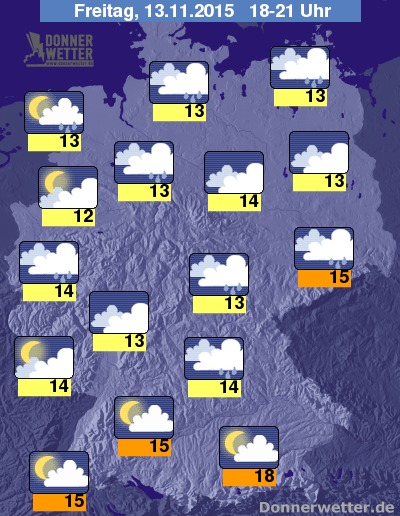Die Temperaturen liegen bei Werten um 12 Grad C bis 18 Grad C.