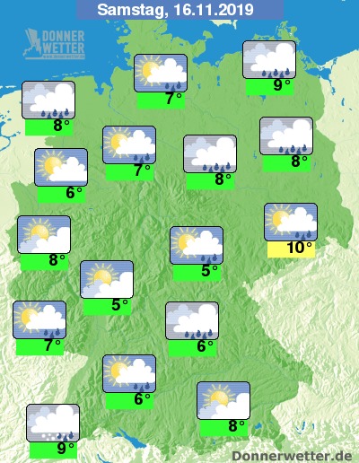 Heute bleibt es über dem Norden weitgehend bedeckt und vor allem in der ersten Tageshälfte fällt hier zeitweise Regen, zum Abend hin lassen die Niederschläge nach. Im übrigen Bundesgebiet ist es meist stark, teils aufgelockert bewölkt, dazu fällt nur örtlich auch mal etwas Regen. Die Temperatur erreicht 5 Grad im Grabfeld und bis 10 Grad in der Lausitz.