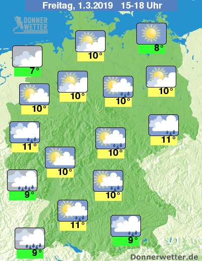 Am Nachmittag regnet es vor allem in der Mitte und im Süden des Landes noch verbreiteter und im Südwesten teilweise auch intensiver. Im Norden gibt es längere freundliche und trockene Abschnitte.