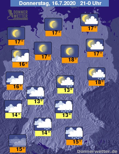 Bis zu den Frühstunden kühlt die Luft auf 7 bis 15 Grad ab, am kühlsten wird es im Thüringer Becken, am mildesten bleibt es auf Rügen.