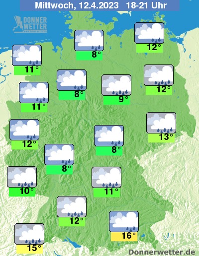 Am Donnerstag bleibt es größtenteils dicht bewölkt. Stellenweise, vor allem im Norden ist es hier und da auch aufgelockert bewölkt. Es bilden sich gebietsweise Schauer bei Höchstwerten von 7 Grad in München und bis 13 Grad in Köln.