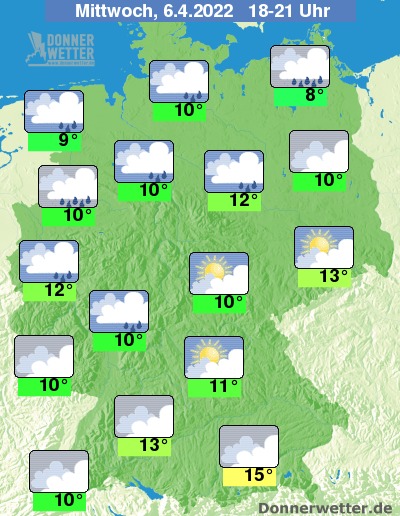 Heute Abend kann es über Nordbayern, Thüringen und Sachsen gebietsweise auflockern, sonst bleibt es weitgehend bedeckt und im Norden und Westen setzt von Nordwesten her neuer Regen ein. Weiter nach Südosten hin bleibt es weitgehend trocken. Die Temperatur liegt bei 8 Grad in Stralsund und rund 15 Grad in München. Der Wind weht verbreitet stark, zum Teil auch stürmisch.