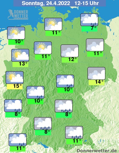 Heute Nachmittag kann sich vor allem im Norden und Westen die Sonne vielerorts zeigen und häufig ist es hier auch trocken. Im übrigen Land hält sich weitgehend dichte Bewölkung und vor allem im Süden bis in die Mitte des Landes fällt zeitweise Regen, sonst bilden sich nur einzelne Schauer. Die Temperatur liegt bei 7 Grad auf Rügen und bis 15 Grad im Rheinland.