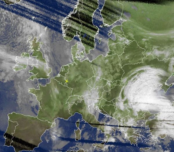 Das Satellitenfoto von heute Morgen zeigt über weiten Teilen von Europa mehr oder weniger dichte Wolken. Am freundlichsten und weitgehend trocken ist es derzeit über der Iberischen Halbinsel und im westlichen Mittelmeerraum. Dagegen bringt ein Tief über dem zentralen Mittelmeer sehr unbeständiges Wetter von Italien, über die Adria, den Balkan und mit seinen Ausläufern auch weit rein bis nach Ost- und Südosteuropa.