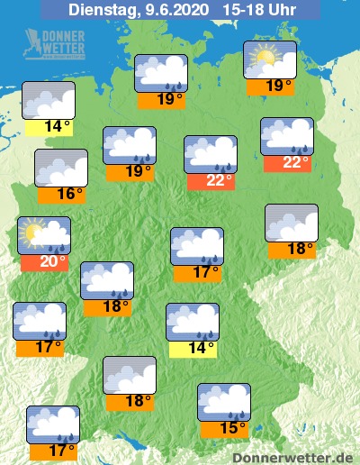 Die Temperaturen bewegen sich zwischen 13 Grad an der Emsmündung und 22 Grad in Berlin.