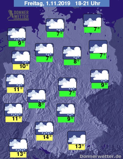 Am Abend fällt aus kompakten Wolken verbreitet Regen. Noch trocken bleibt es ganz im Nordosten und im südöstlichen Bayern.