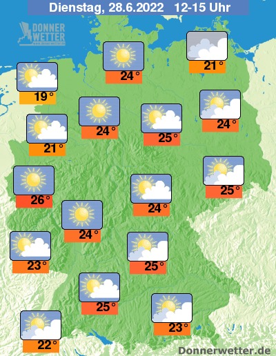 Heute Nachmittag ist es über dem Süden und über Sachsen häufig stark bewölkt, dabei bleibt es aber weitgehend trocken. Im übrigen Land ist es verbreitet heiter bis sonnig und trocken. Die Temperatur liegt bei 19 Grad an der Nordsee und rund 26 Grad in der Kölner Bucht.