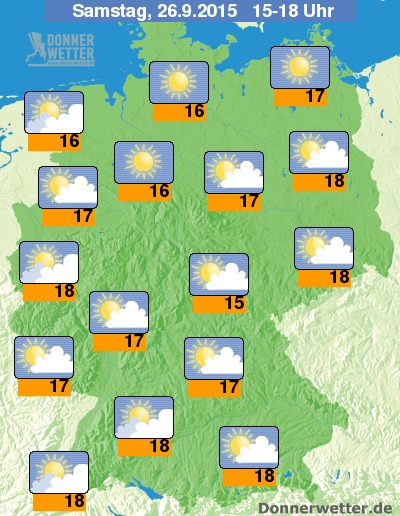 Heute Nachmittag zeigt sich im Süden ein Mix aus Sonne und teils dichten Wolken, dabei kann es vor allem nach Südosten hin auch gebietsweise bedeckt bleiben. Im übrigen Bundesgebiet ist es hingegen verbreitet nur locker bewölkt oder sogar sonnig. Es bleibt landesweit trocken bei Höchstwerten von 15 Grad im Coburger Land und bis 18 Grad in Berlin.