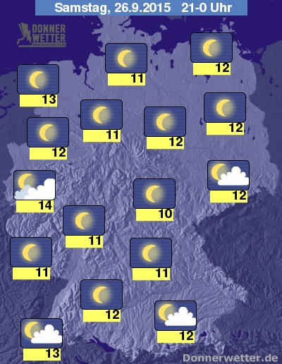Heute Abend zeigt sich der Himmel über Deutschland verbreitet sternenklar, nur hier und da ziehen auch noch lockere Wolkenfelder übers Land, diese bringen allerdings keinen Regen. Die Abendtemperatur liegt bei 14 Grad in Köln und 10 Grad am Thüringer Wald.