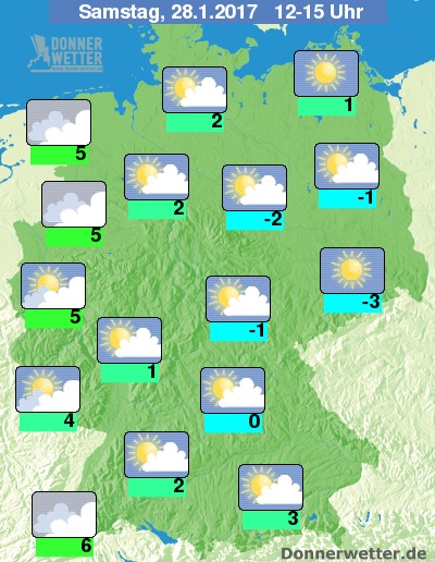 Heute Nachmittag zeigt sich das Wetter überwiegend recht freundlich mit einem Mix aus Sonne und überwiegend lockeren bis aufgelockerten Wolken. Sonnig ist es vor allem über Sachsen und im Ostseeumfeld. Teils dichte Wolken halten sich über dem Südwesten und dem Niederrhein, jedoch bleibt es auch hier trocken. Die Temperatur liegt bei -3 Grad in Dresden und um 6 Grad in Freiburg.