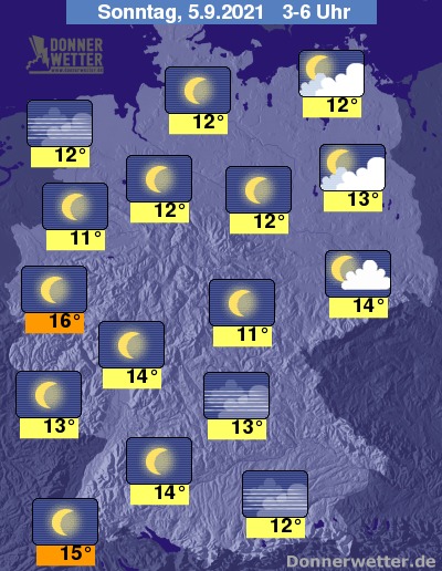 Die Temperaturen erreichen in den Frühstunden Werte um 11 bis 16 Grad.