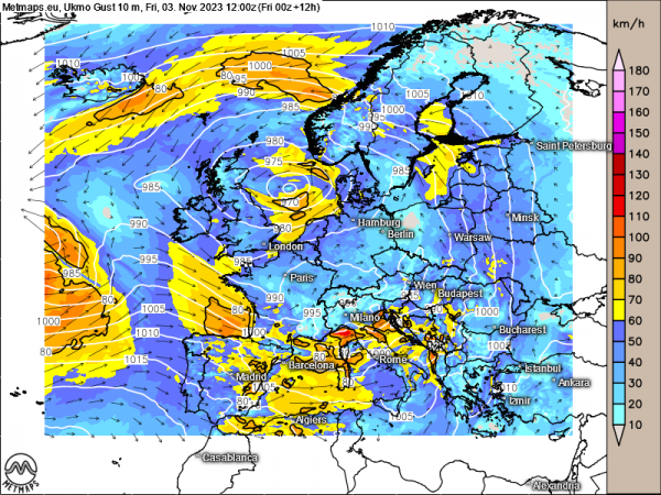 Während der Freitag eine Art Sturm-Übergangstag in Deutschland darstellt, bekommen es andere Teile Europas heute wieder mit heftigen Böen zu tun - in der Region Genua (Italien) muss man sich beispielsweise heute auf Orkanböen um 120 km/h einstellen.
