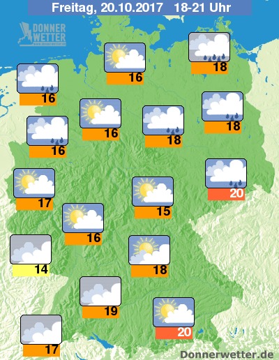 Heute Abend ziehen besonders im Norden und Osten Deutschlands oft dichte Wolken durch, die hier gebietsweise Regen bringen. Stark bewölkt ist es auch im Südwesten, dabei bleibt es jedoch trocken. Im übrigen Bundesgebiet ist es überwiegend heiter, hier und da auch mal bewölkter, jedoch trocken. Die Temperatur liegt bei 14 Grad im Saargau und bis 20 Grad in der Lausitz.