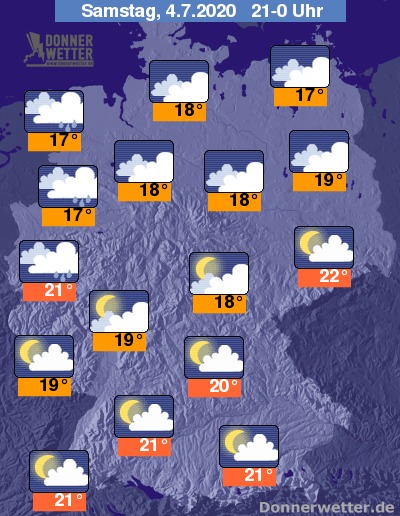 Die Temperaturen sinken im späteren Abendverlauf auf Werte um 22 bis 17 Grad ab.