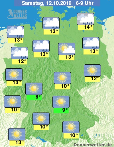 Der Samstag beginnt im äußersten Nordwesten und Nordosten mit dichten Wolken, aus denen immer wieder Schauer fallen können. An der Ostseeküste kann es auch kräftiger regnen. Südlich davon scheint die Sonne in den Morgenstunden von einem meist wolkenlosen Himmel.