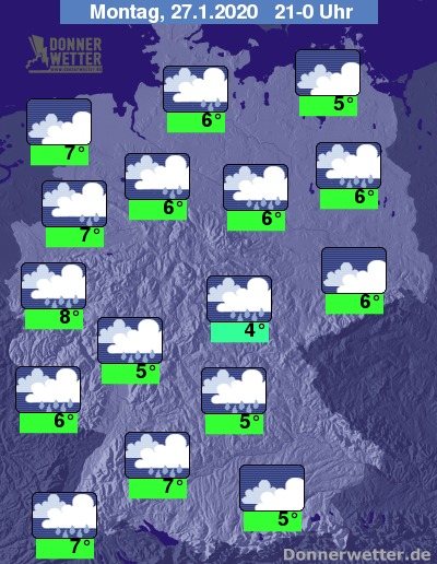 Die Temperaturen sinken bis zum späten Abend auf Werte um 4 Grad in Oberfranken und um 8 Grad in der Kölner Bucht.