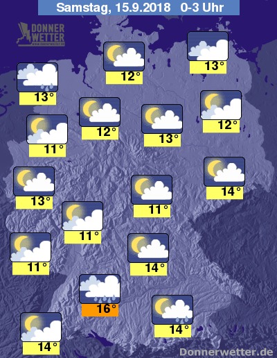 In der Nacht zeigt sich der Himmel über weiten Landesteilen locker oder aufgelockert bewölkt, entlang der Küsten sowie an der Donau können aus dichten Wolken auch mal einzelne Schauer fallen.
