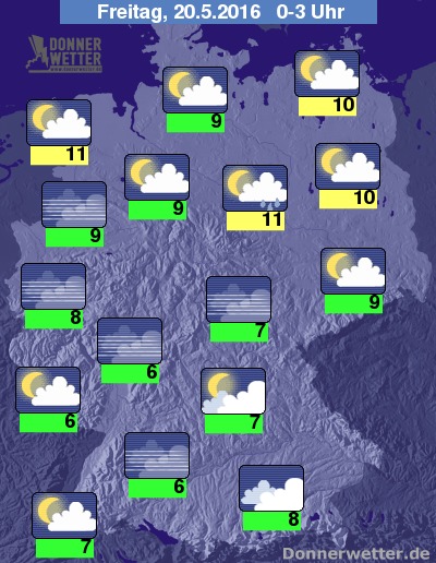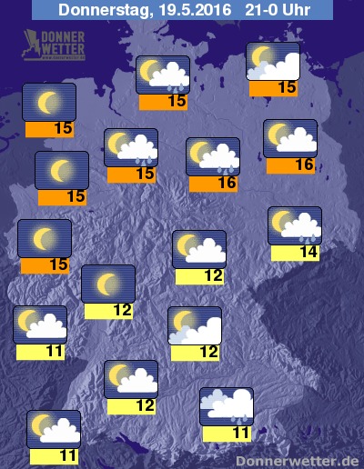 Am späten Donnerstagabend zeigt sich vor allem über der Westhälfte ein teils sternenklarer Himmel, östlich der Weser sind phasenweise Schauer zu erwarten. Im Süden bleibt es bei teils lockerer, teils aufgelockerter Bewölkung häufig trocken.