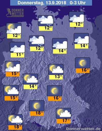 Die Temperaturen erreichen am späten Abend noch Werte um 20 bis 23 Grad C im Süden, im Norden um 13 bis 16 Grad C.
