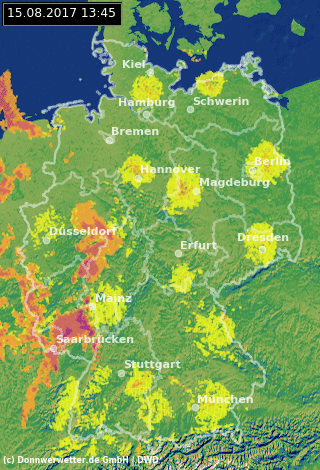 Die potentiellen Unwetterschwerpunkte sind im weiteren Nachmittagsverlauf vor allem der Osten NRWs, das südliche Niedersachsen und Rheinland-Pfalz sowie der Norden und Süden Hessens und das Saarland.