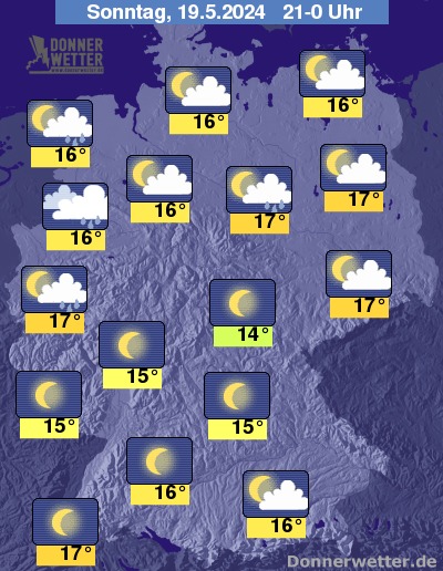 Am Nachmittag zeigt sich der Himmel südlich der Donau sowie an den Küsten heiter bis wolkig und es sich nur selten Schauer möglich. In den übrigen Landesteilen überwiegt wechselnde Bewölkung, dabei sind immer wieder Schauer und einzelne Gewitter zu erwarten.