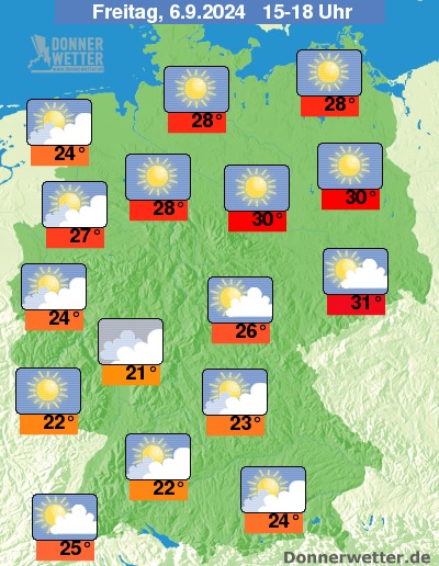 Die Temperaturen erreichen Höchstwerte um 21 Grad im Rhein-Main-Gebiet und 31 Grad in der Lausitz.