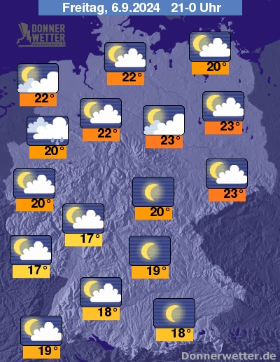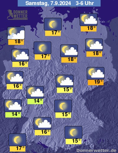 Die Temperaturen gehen in den frühen Morgenstunden zurück auf Werte um 19 bis 14 Grad.