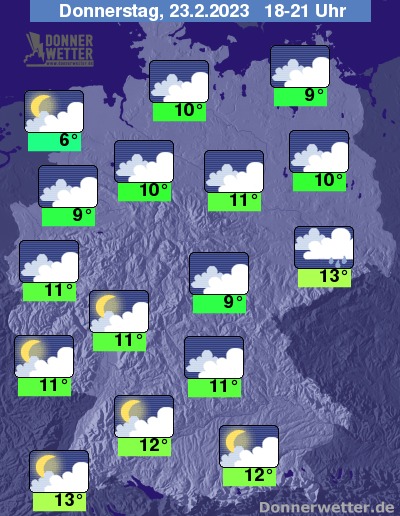 Heute Abend fällt bei dichten Wolken über Sachsen und Thüringen gebietsweise Regen. Im übrigen Bundesgebiet ist es oft stark, vor allem im Süden und Südwesten aber auch aufgelockert bewölkt, dazu bleibt es trocken. Die Temperatur liegt bei 6 Grad in Cuxhaven und bis 13 Grad in Dresden.