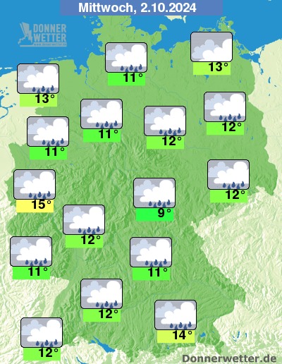 Temperaturen am Mittwoch um 9 bis 15 Grad.
