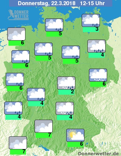 Ausläufer eines Tiefs überqueren Deutschland im Tagesverlauf und sorgen bis zum Abend im ganzen Land für Niederschläge. Über Mittag fällt vor allem im Osten teils ergiebiger Regen, in höheren Lagen auch Schnee. Dementsprechend ist mit glatten Straßen zu rechnen. Weitgehend trocken und mitunter recht sonnig bleibt es hingegen vorerst im Süden des Landes, doch auch hier setzt im Lauf des Nachmittags Regen bzw. Schneefall ein.