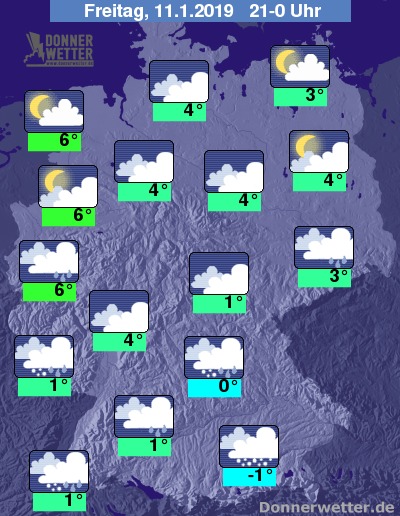 Allgemein liegen die Temperaturen zu den Frühstunden zwischen -1 und 3 Grad, im Westen und Nordwesten bei milderen 4 bis 6 Grad.