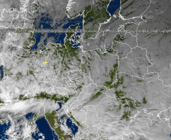 Auf dem Satellitenfoto von heute Nachmittag zeigt sich das Bundesgebiet meist unter Wolken, dabei kommt der Norden des Landes mit Abstand am besten weg, denn hier zeigen sich große Gebiete wolkenfrei oder nur locker bewölkt. Weiter südlich dagegen fiel und fällt immer noch zeitweise Regen, Schneeregen und vor allem in etwas höheren Lagen Schnee.