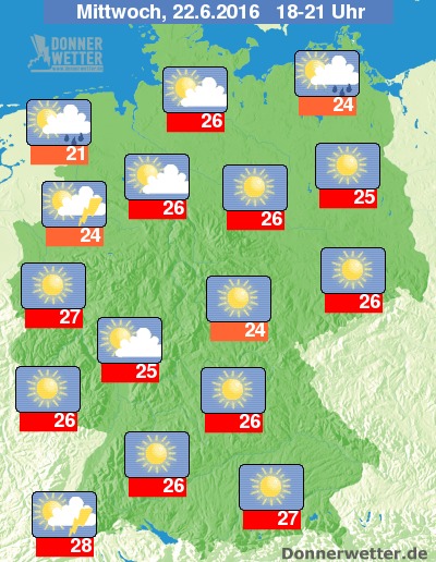 Heute Abend besteht entlang der Ems und im Breisgau ein leichtes bis mäßiges Schauer- und Gewitterrisiko und auch im äußersten Nordosten sind vereinzelt Schauer möglich. Im großen Rest der Republik scheint dagegen die Sonne von einem meist wolkenlosen Himmel, dabei bleibt es trocken. Die Temperatur liegt bei 21 Grad an der Nordseeküste und rund 28 Grad im Oberrheingraben.
