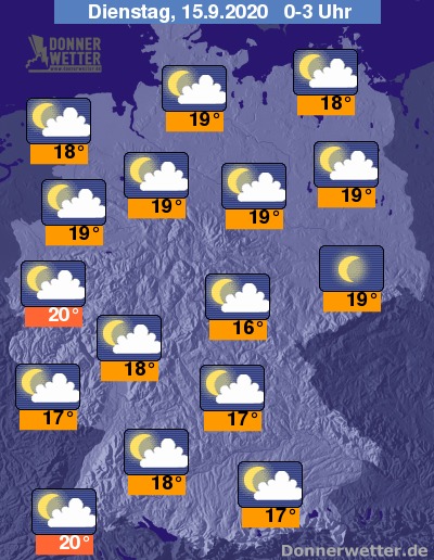 Tiefstwerte örtlich nahe der 20-Grad-Marke.