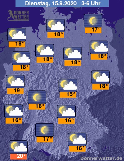 Die Temperaturen sinken bis in die frühen Morgenstunden auf Werte um 20 Grad im Breisgau und um 15 Grad in Franken.